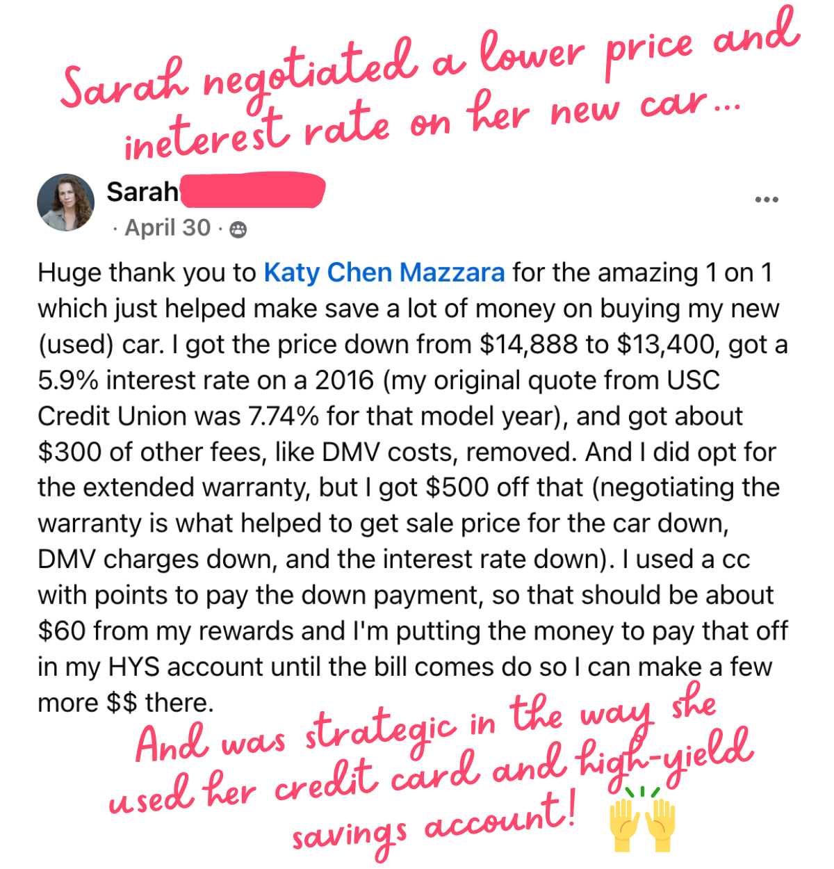 “One year ago I had credit card debt of $24,000, now I have credit card debt of $2,500 and I have savings for the first time ever!! And it doesn’t even feel like I'm sacrificing anything! It’s kind of incredible. I started saving 10% of absolutely everything I earned, then I gradually started saving more and more and then I became excited by my savings and I knew I would rather see my savings go up than spend the money frivolously on clothes that I probably wouldn’t even like next year. I still buy myself some nice things - I’m a big fan of Poshmark - But my unconscious spending habit has completely disappeared.